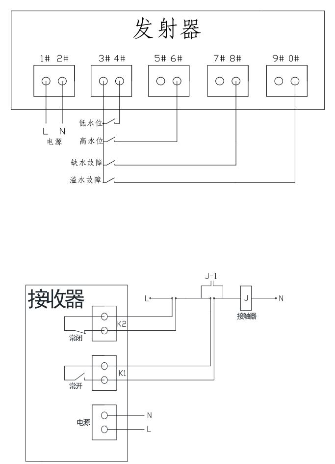 7.系統運行:設備運行時,請先將水塔內的水位設置為中間位置,然后將水塔內發射器的3#4#端子短接一下,接收器收到信號后啟動水泵,進入工作狀態。